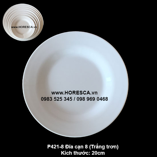 P421-8 Dĩa Cạn 8 (Trắng Trơn)
