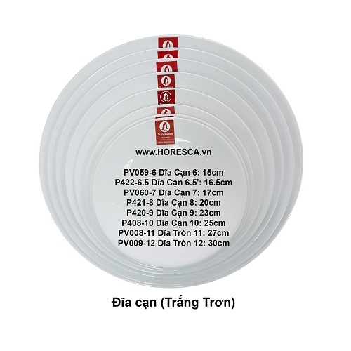 PV009-12 Dĩa Tròn 12 (Trắng Trơn)