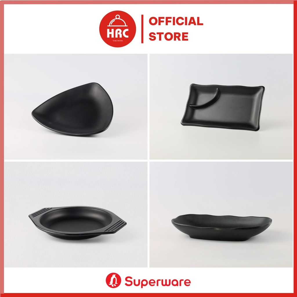 “Đĩa Nhựa Đen Nhám Melamine Đa Dạng Kiểu Dáng” nằm trong bộ sưu tập "Bộ bát đĩa đen nhám - Superware" với bề mặt đen nhám đẹp mắt, sang trọng nổi bật tôn thêm vẻ đẹp cho các món ăn phong cách Hàn Quốc, Nhật Bản. Bộ sản phẩm gồm nhiều mẫu mã có thiết kế kiểu dáng mới lạ phù hợp với nhiều phong cách nhà hàng khác nhau. Sản phẩm có bề mặt nhám sẽ giúp hạn chế trầy xước, bám màu, chất liệu 100% melamine A5 giúp sản phẩm bền hạn chế sứt vỡ và an toàn khi sử dụng.